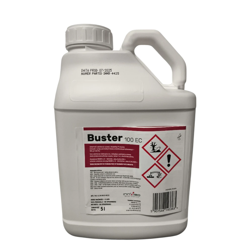 Buster 100 EC jest herbicydem w formie koncentratu do sporządzania emulsji wodnej, stosowanym nalistnie, przeznaczonym do zwalczania perzu właściwego, samosiewów zbóż i innych chwastów jednoliściennych w uprawie rzepaku ozimego i buraka cukrowego.