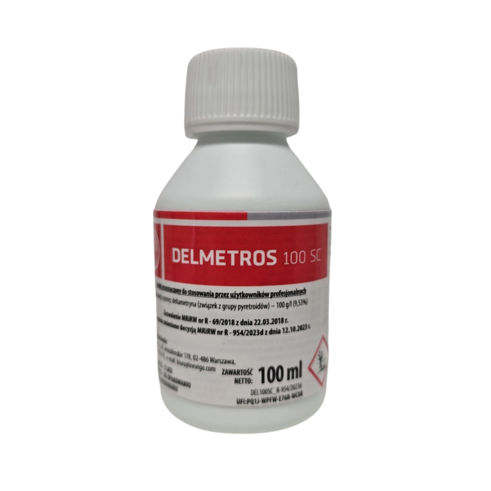 Delmetros 100 SC to insektycyd firmy Innvigo w formie koncentratu (SC) do rozcieńczania wodą. Zawiera deltametrynę – 100 g/l (9,53%), związek z grupy pyretroidów o działaniu: