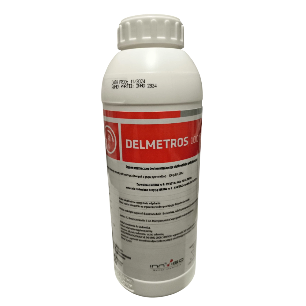 Delmetros 100 SC to insektycyd firmy Innvigo w formie koncentratu (SC) do rozcieńczania wodą. Zawiera deltametrynę – 100 g/l (9,53%), związek z grupy pyretroidów o działaniu: