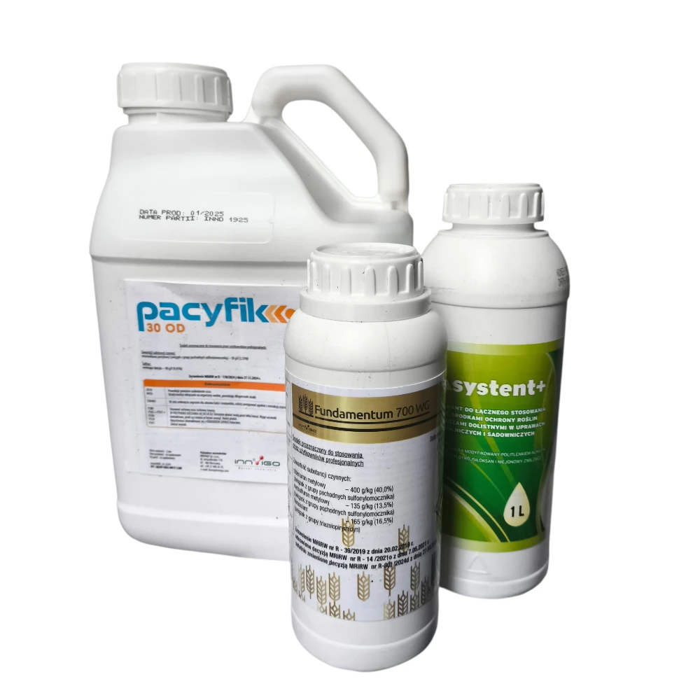 Rekomendowana dawka Pacyfik Duo: Pacyfik 30OD 0,5l/ha + Fundamentum 700WG 25 g/ha + Asystent+ 0,1 l/ha.